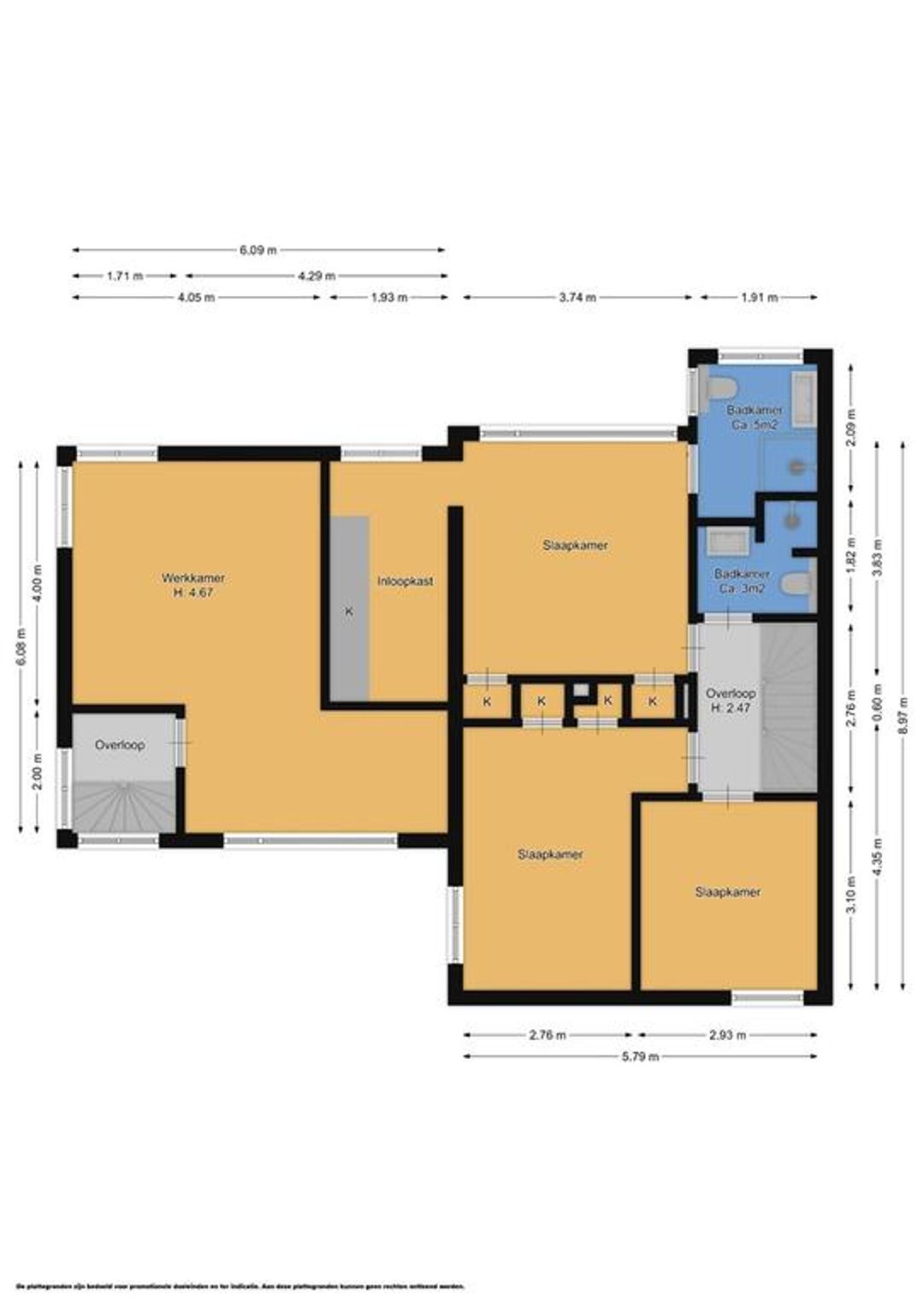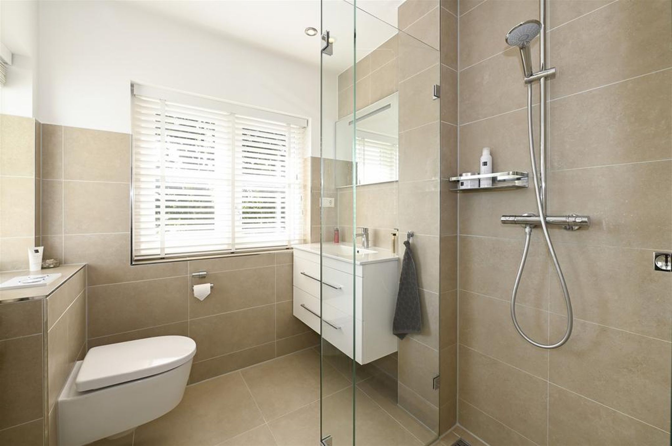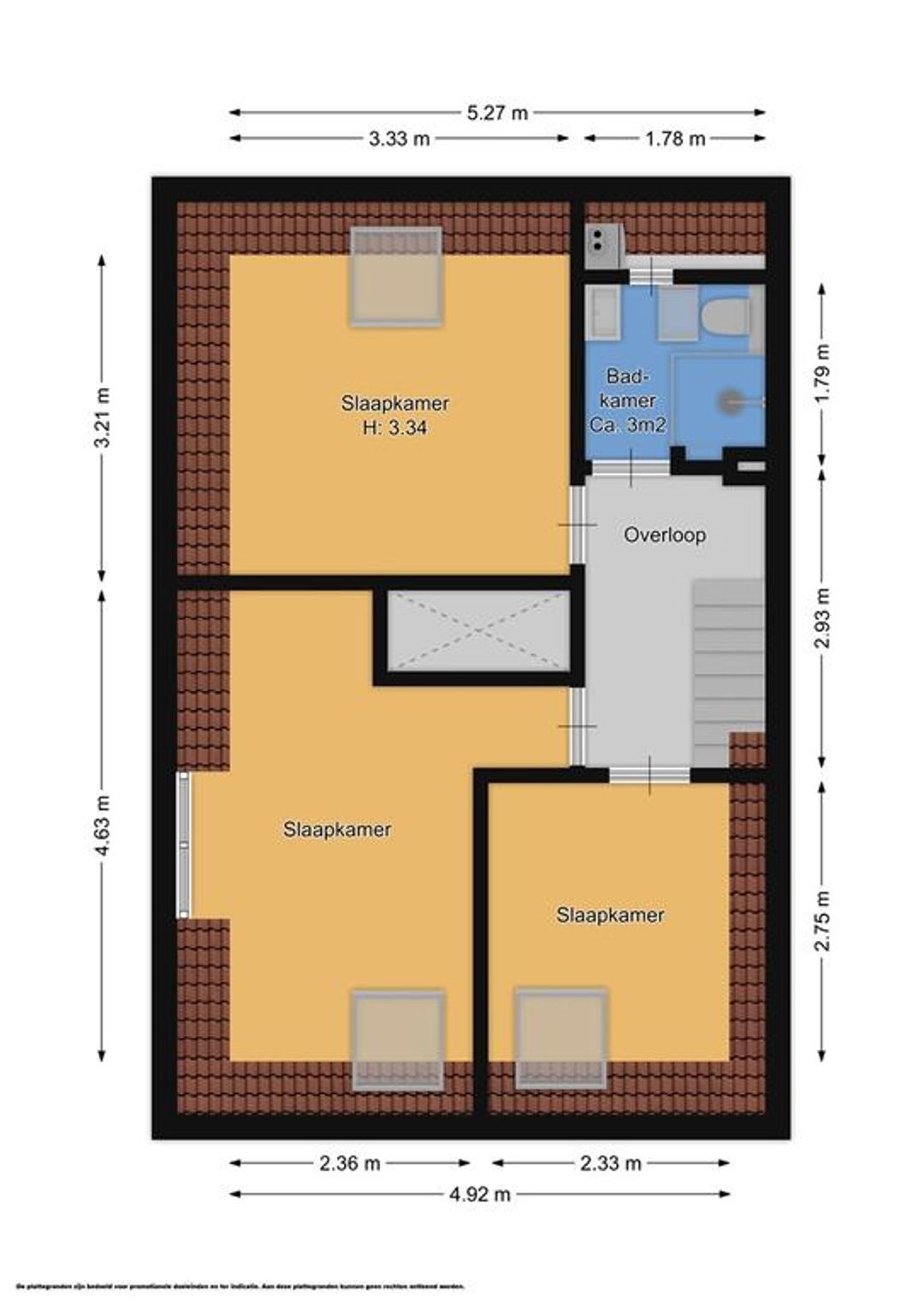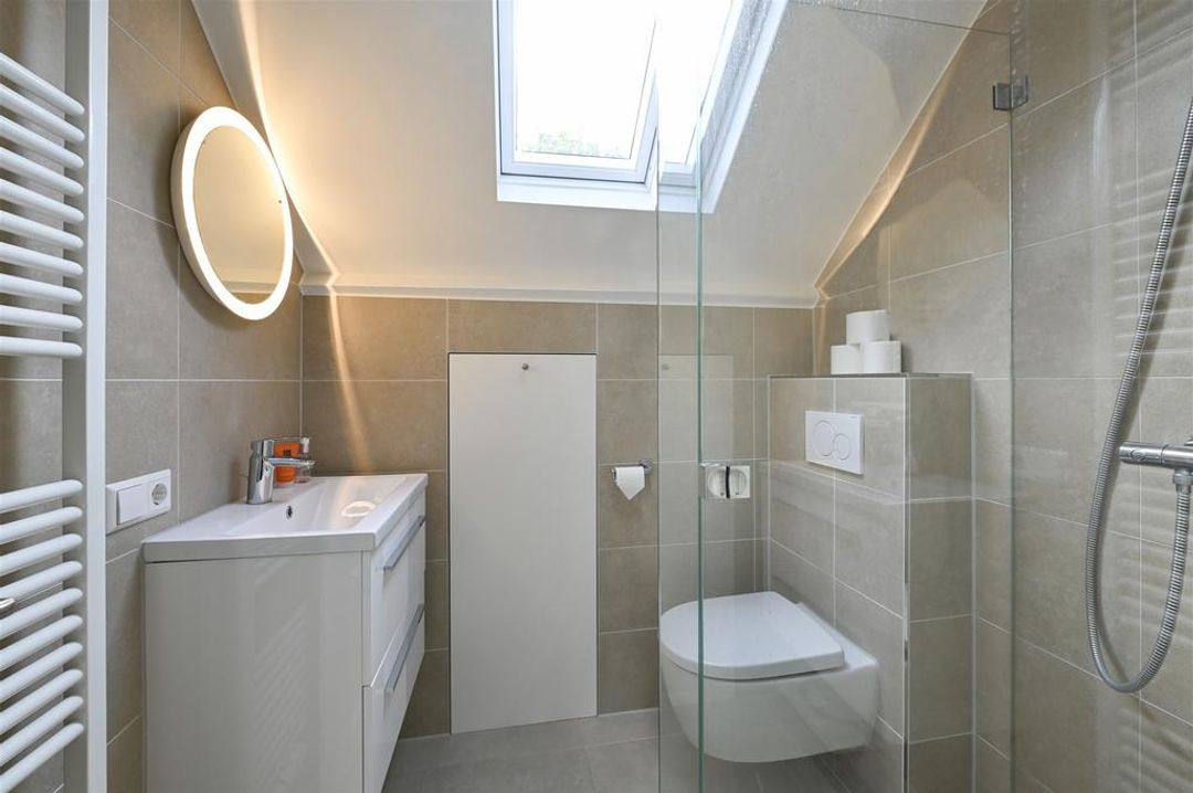 Overloop, 3 mooie slaapkamers en 3e een badkamer v.v. douche, wastafel en toilet.